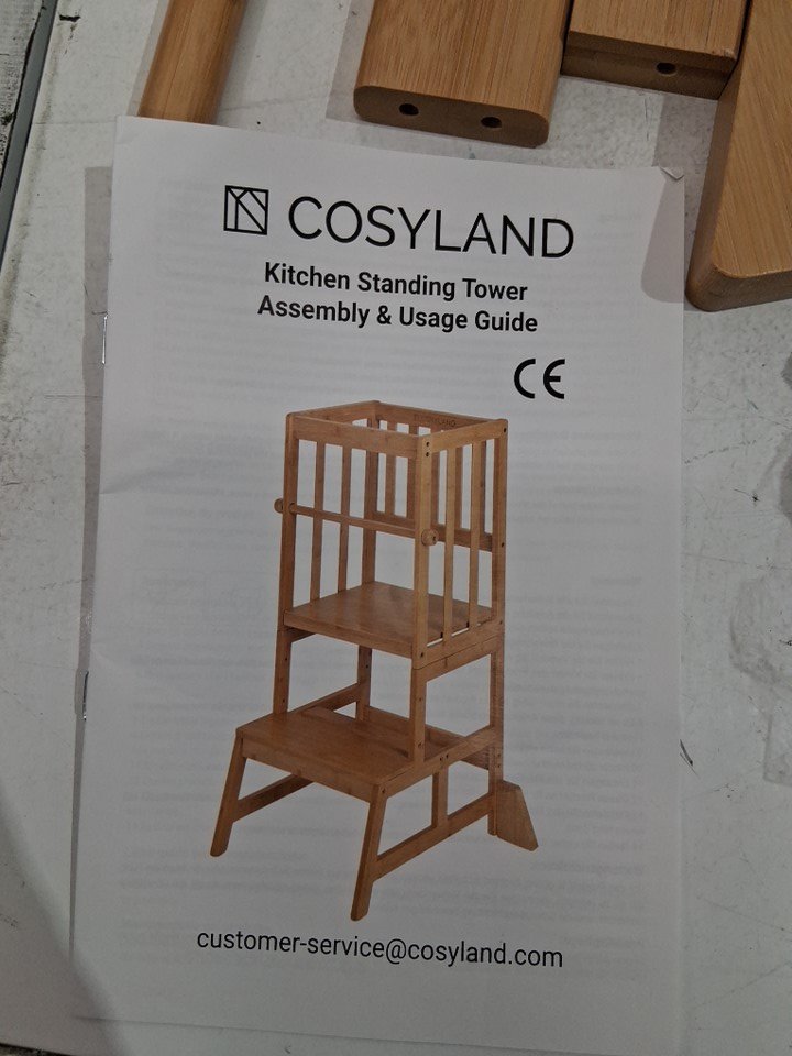 COSYLAND Height Adjustable Toddler Standing Tower Kitchen Step Stool - 35" x 18" - Blonde Bamboo (model: CS00120-1-CA)