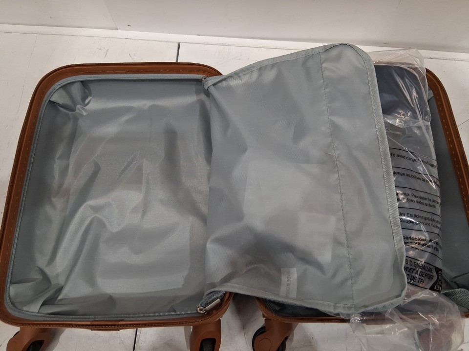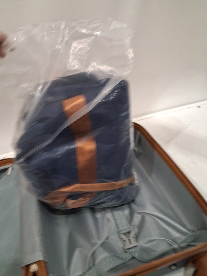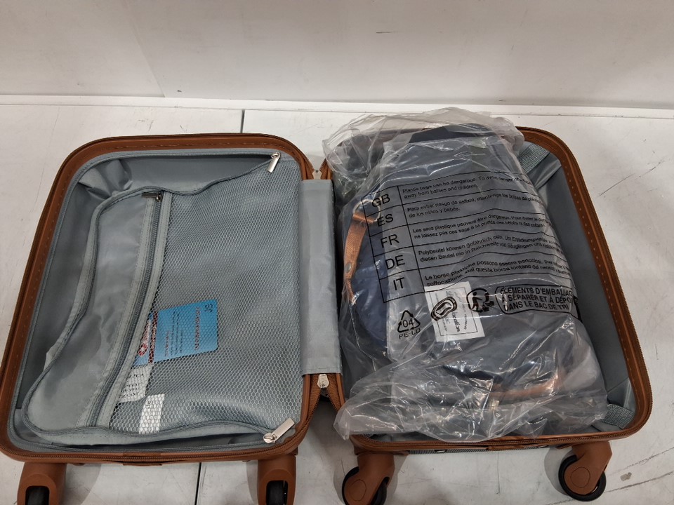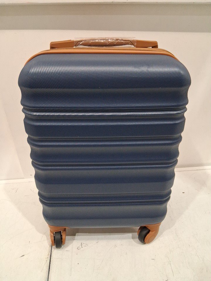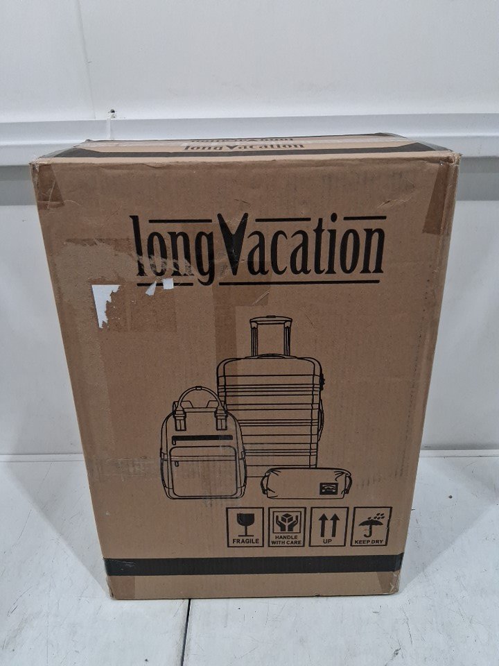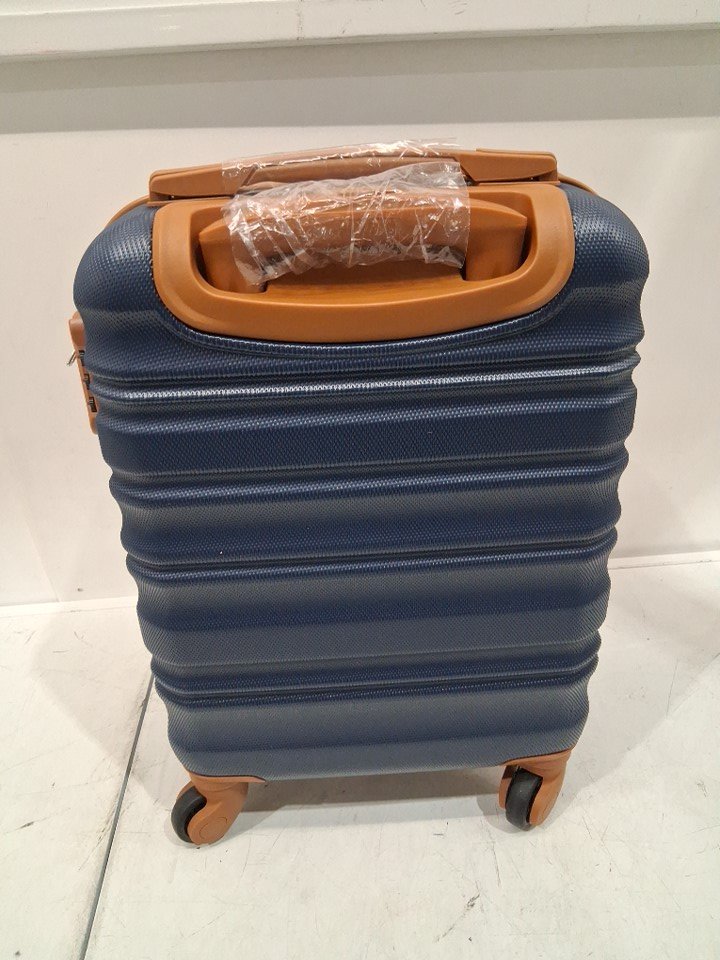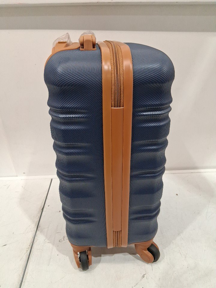 3PC LONG VACATION Luggage Set Hardshell with TSA Lock Spinner Wheels Duffel bag and toiletry bag - 20" - NAVY blue/brown