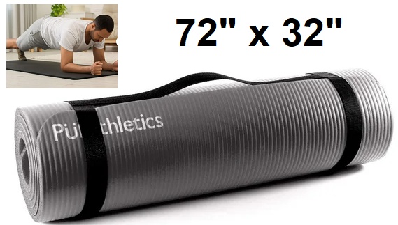 PurAthletics Premium Exercise and Pilates Mat - 72" x 32" 1\2" - black