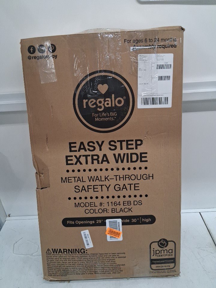 REGALO EASY STEP EXTRA WIDE METAL SAFETY GATE - 30" x 29" - 49" - BLACK (MODEL: 1164EBDS)