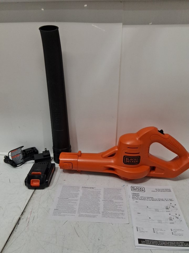 Black and Decker Cordless Blower Lightweight Sweeper - 20V 130MPH - Black/ORANGE - (Model: LSW221)