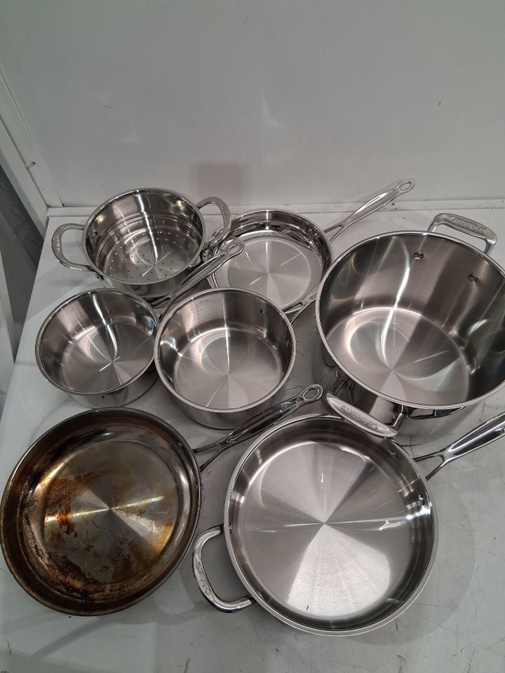 Please note 1 of the pans shows signs of previous use with oil residue and burn marks. The other pans appear to be unused, see photos.