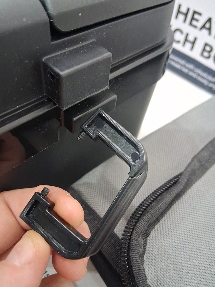 Container has water spots on inside of it, and one clip is broken on side
