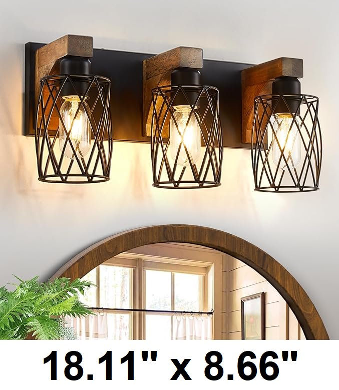 rvonow farmhouse bathroom vanity light fixture - 18.11" x 8.66" - 30w - black/brown (model: b219-042-03-bk)