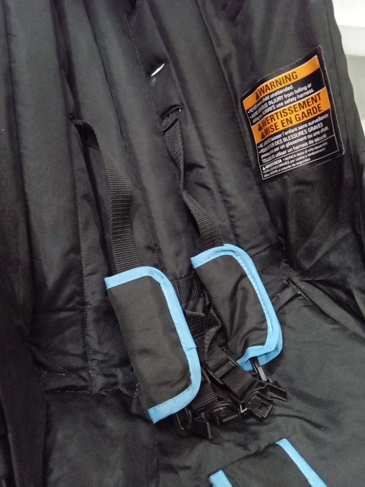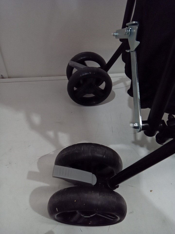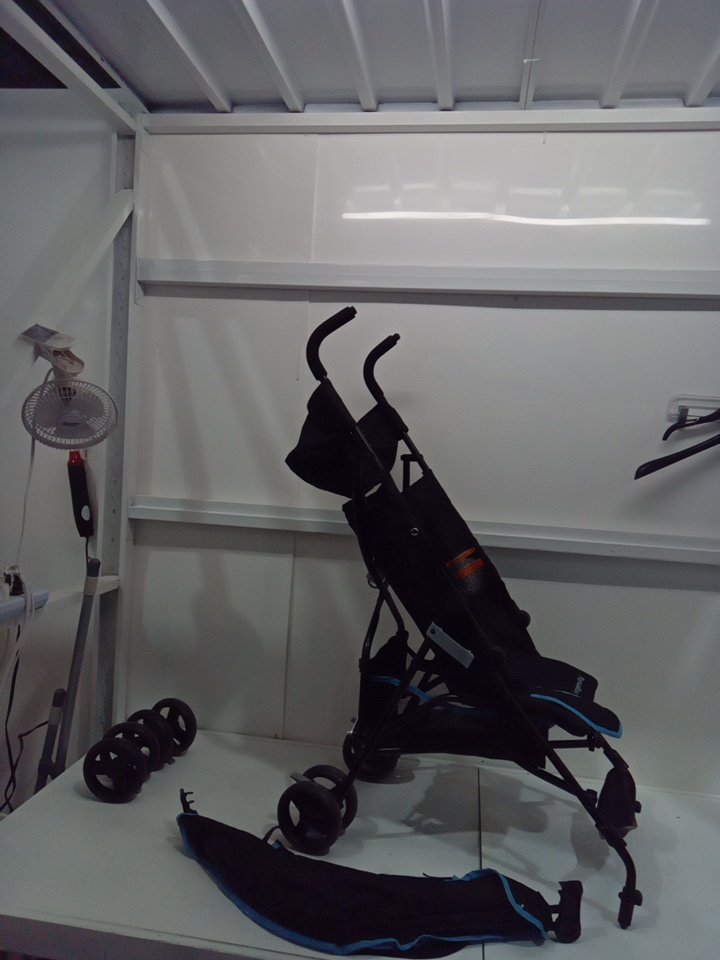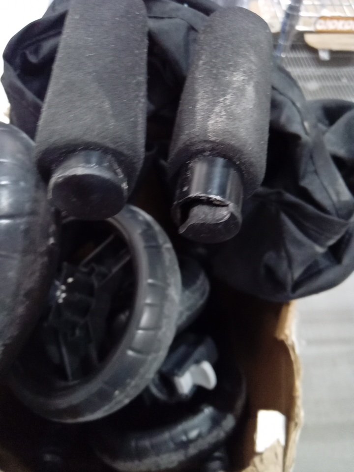 appears that the wheels have some signs of use and there is some crumbs in the seat and a chip on the top handle (See photo)