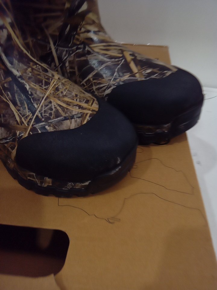appears that the one boot has some scuffing at the bottom and on the toe (see photo)