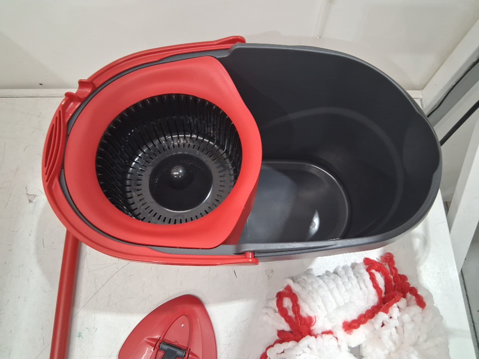VILEDA EASYWRING POWER SPIN BUCKET SYSTEM WITH EXTENDABLE POLE & extra mop heads - 22" to 48" - GREY/RED (MODEL: 172880)