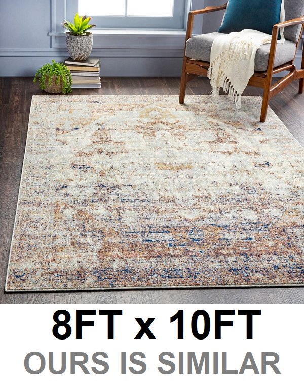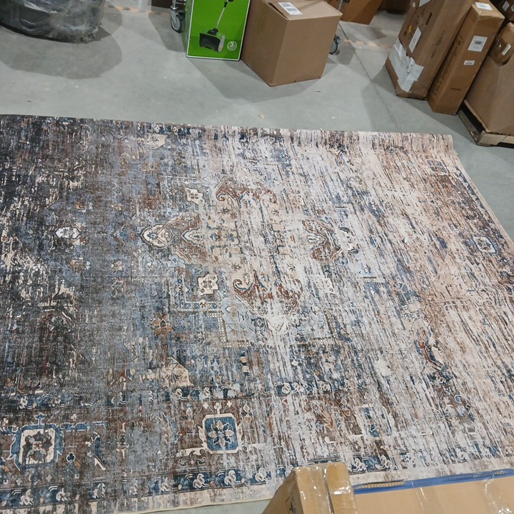 NON SLIP INDOOR OUTDOOR AREA RUG - 8FT X 12FT - NAVY BLUE/BIEGE