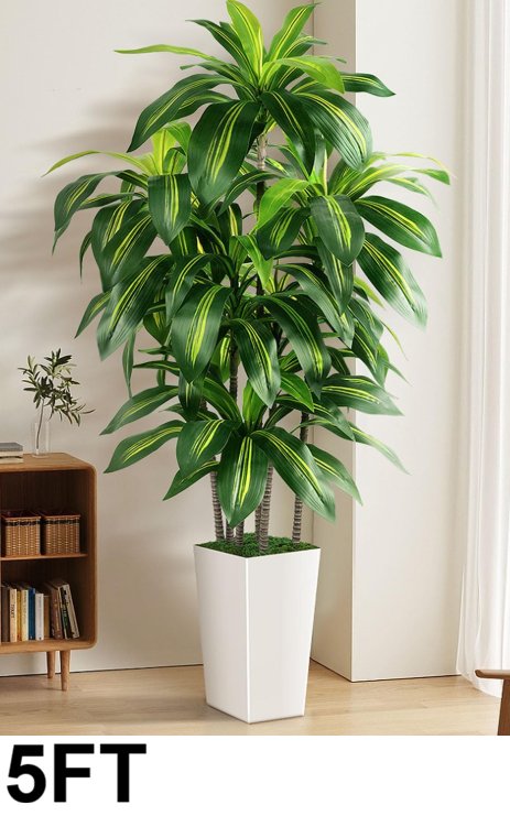 PUUKU Artificial Dracaena potted Tree - 5ft - green/white