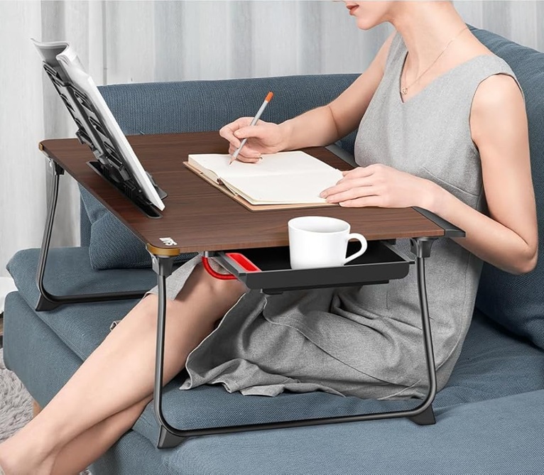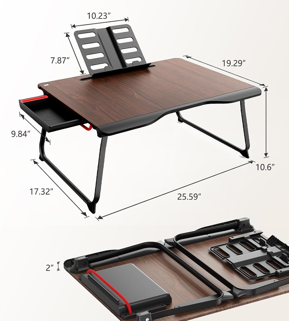 Foldable Laptop Desk with Storage Drawer & Handrest Bookstand - 17" x 26" - Brown
