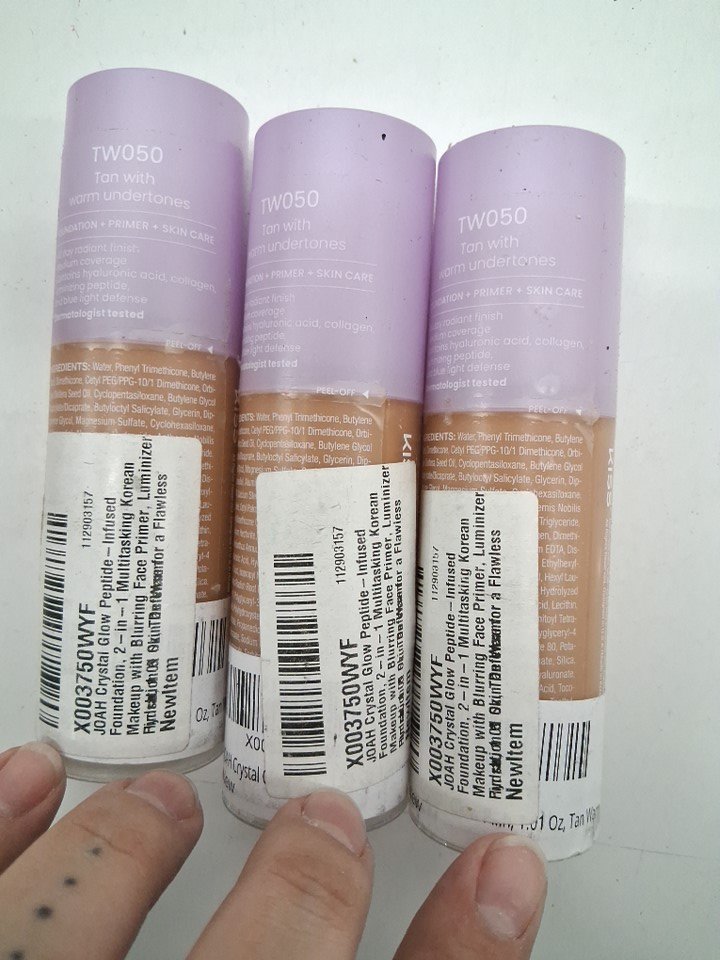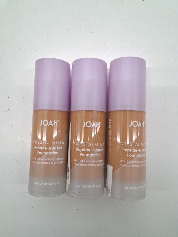 3 JOAH Crystal Glow Peptide-Infused Foundation with Blurring Face Primer - 30ml each - 50 Tan Warm