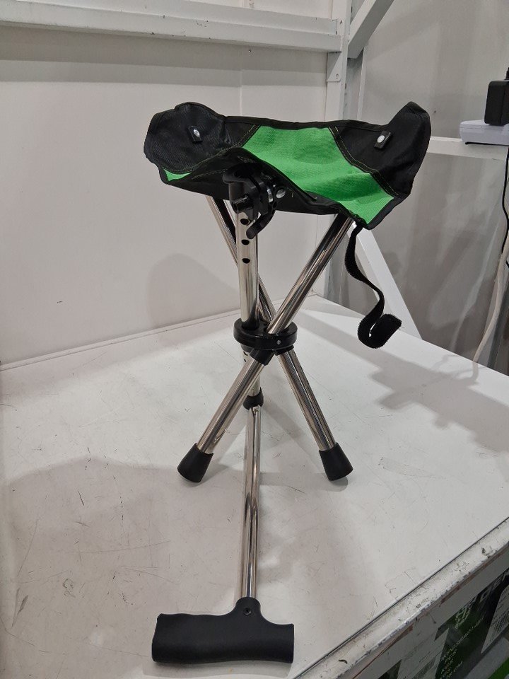 King Mills Lightweight Portable Stool WITH Anti-Slip Cane 250LBS MAX - BLACK/GREEN