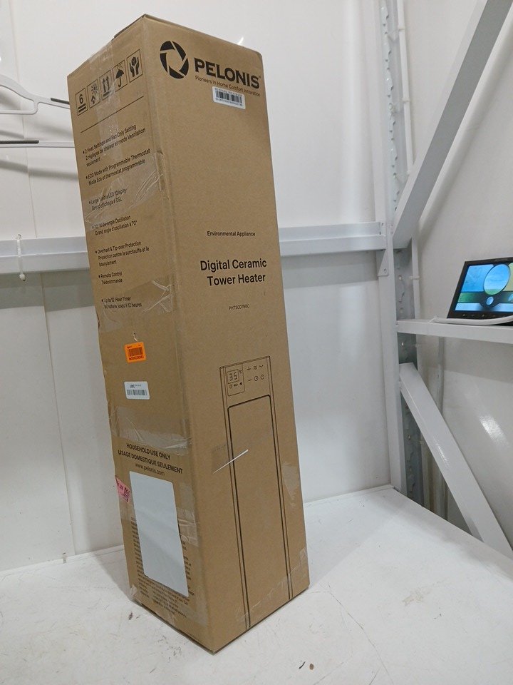 pelonis ceramic tower space heater with adjustable thermostat, 75° oscillation, remote control, and 12h timer - 30" - 1500w - black (model: pht30d7bbc)