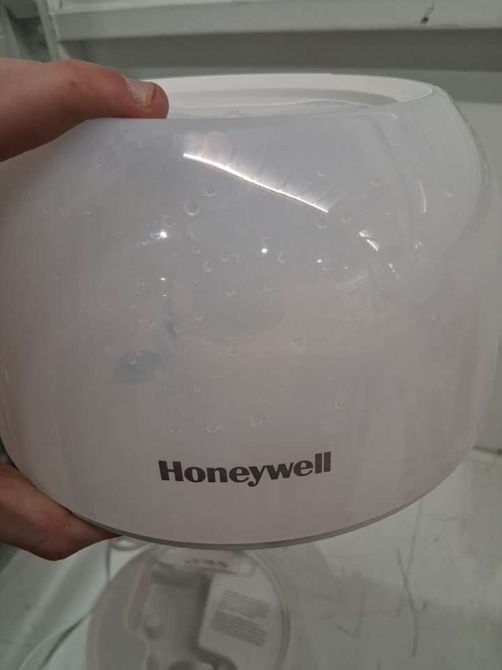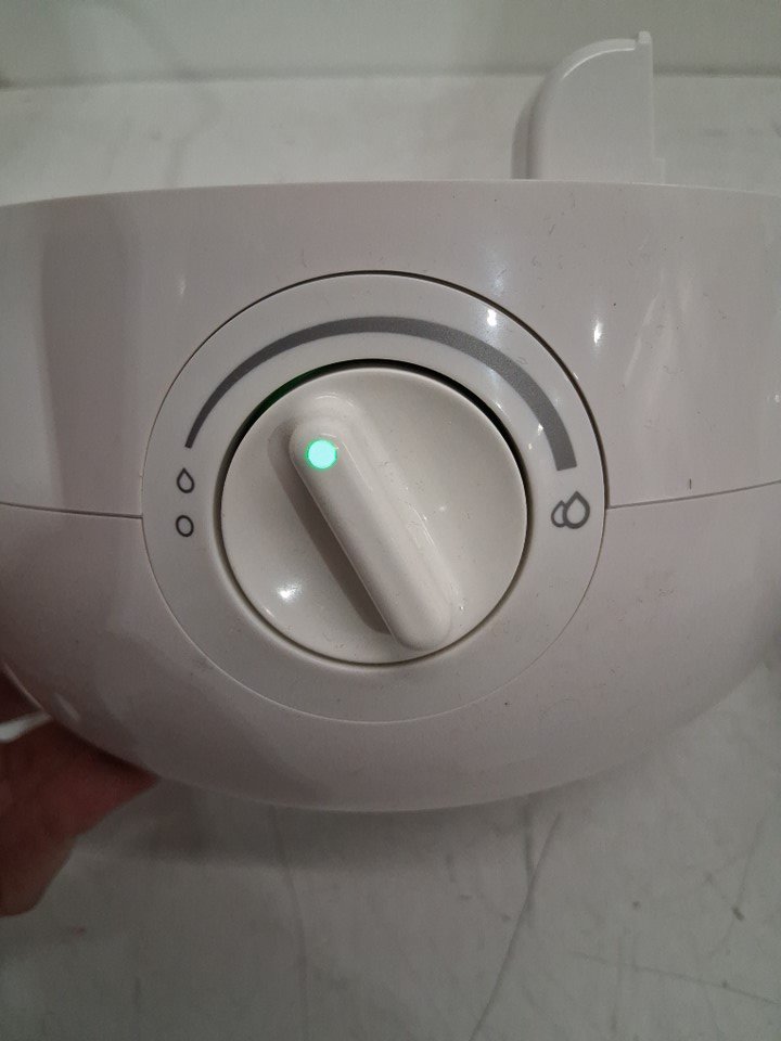 There are water droplets in the humidifier due to previously being used. The humidifier was tested for basic power.