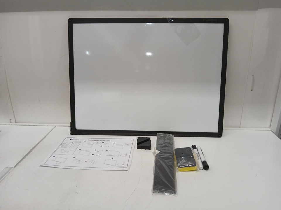 VIZ-PRO Magnetic Whiteboard/Dry Erase Board with Black Aluminium Frame, 1 Eraser, 2 Markers & 4 Magnets -18" x 24"- black/white (model: WB2418LBK-ACCES)