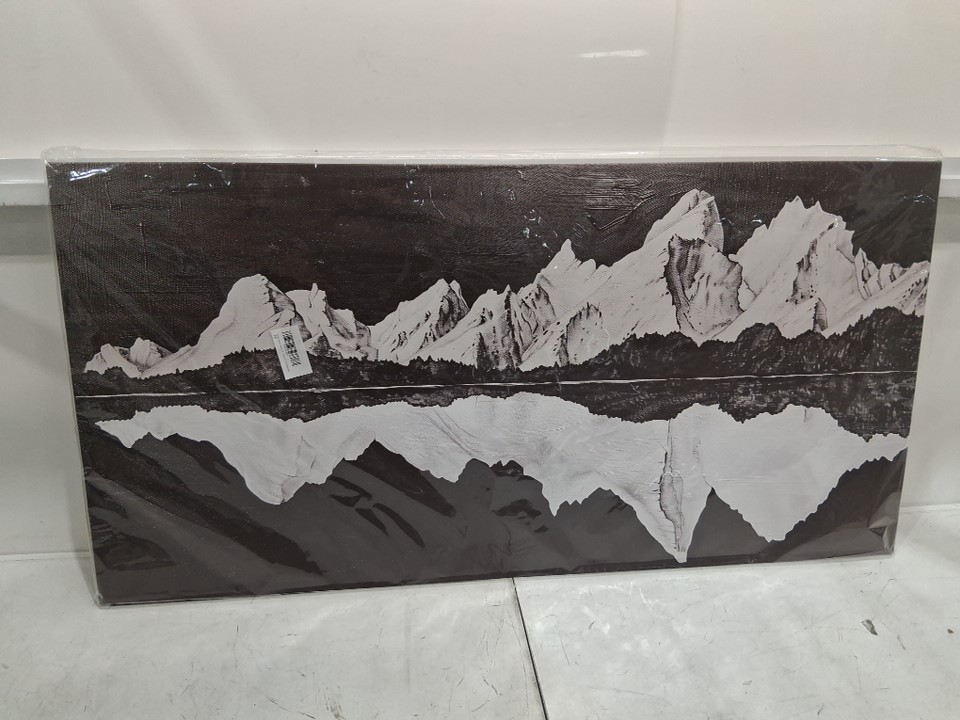 Wall Art Mountain Landscape Canvas Scenic Reflection - 47" x 24" - Black/White