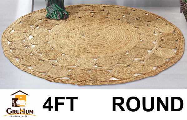 GRUHUM Handwoven ROUND Natural Fiber Jute Area Rug - 4FT - TAN/BROWN
