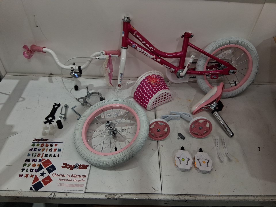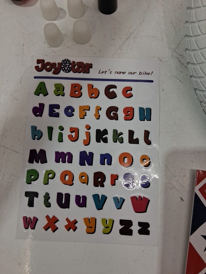 Item has light dirt on the tires and seat and one of the stickers has been used.