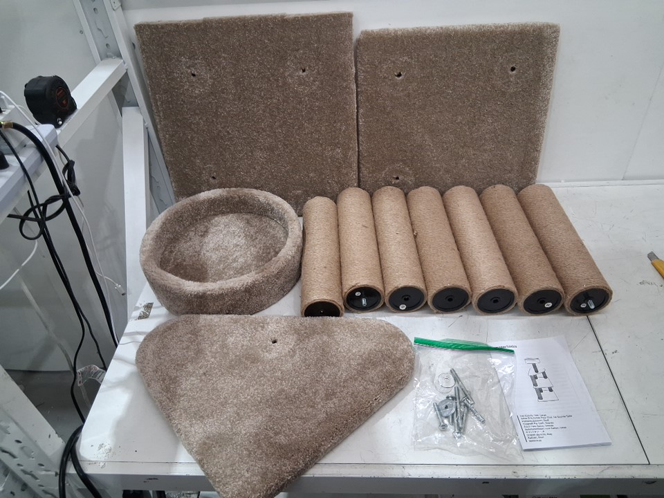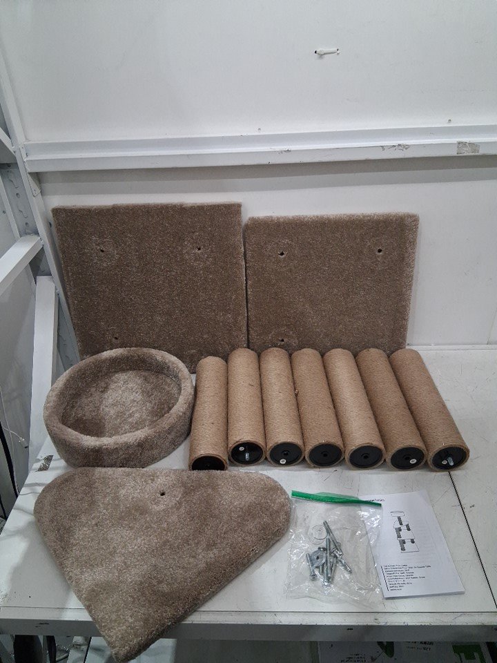 please note that hairs are present on the parts of the cat tree and hardware is in loose bag (see photos).