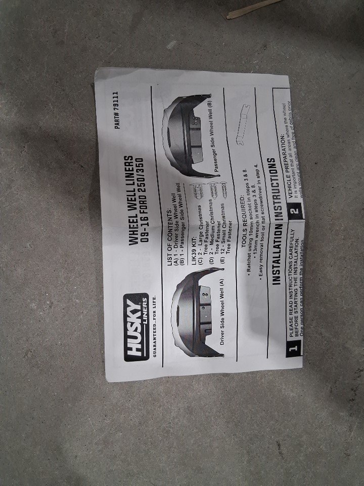 2PC HUSKY LINERS REAR WHEEL WELL GUARDS - FITS '09-'16 FORD F-250/f-350 MODEL TRUCKS - BLACK (MODEL#: 79111)