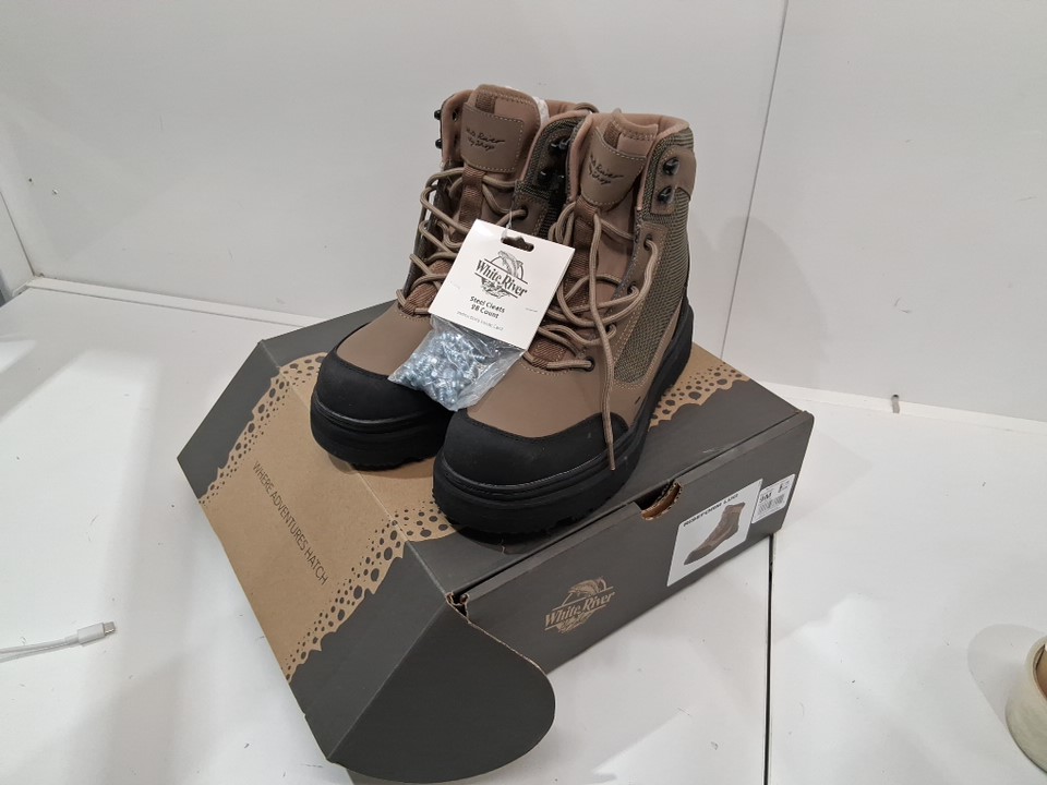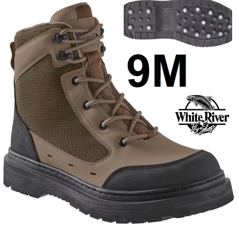 Mens White River Fly Shop Riseform Rubber Lug Sole Wading Boots - 9M - brown/black