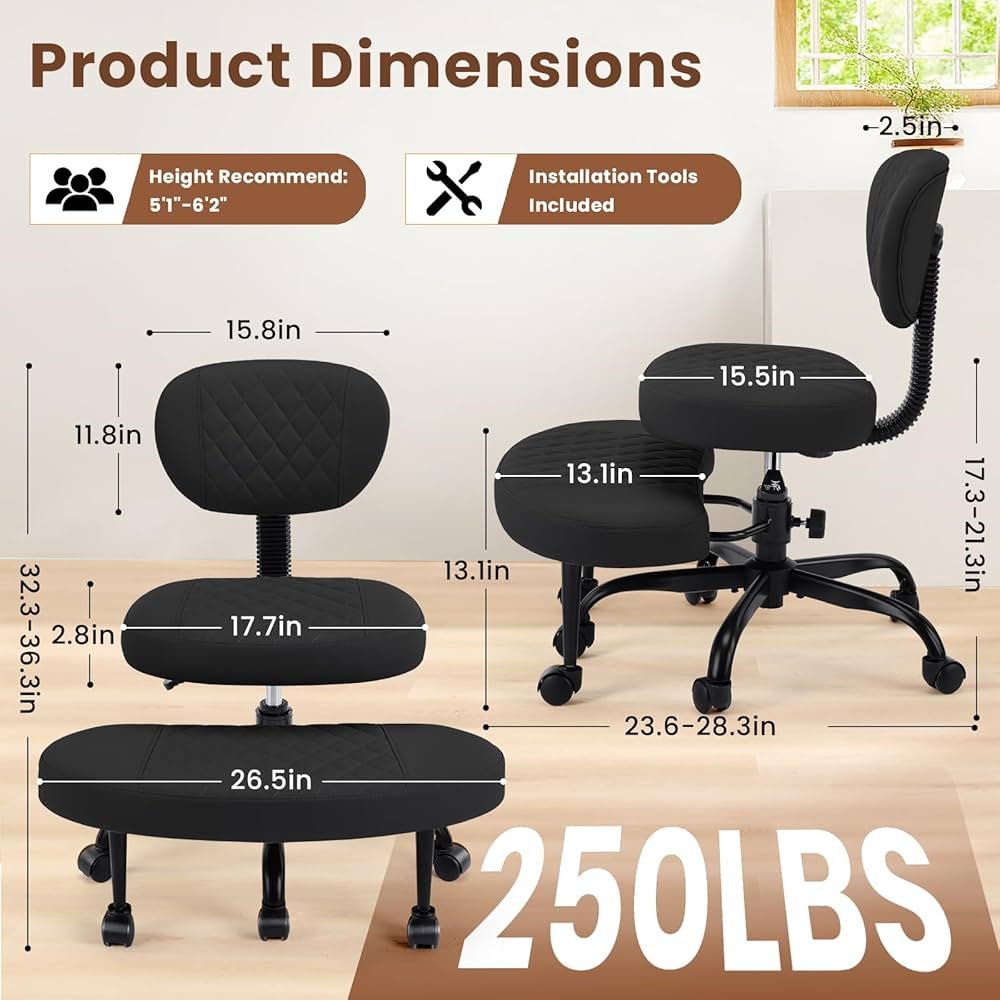 arshark Ergonomic Adjustable Height cross-legged office chair with wheels and rotating footrest - 250lb max - 32.3"-36.3" - GREY (model: yg01)