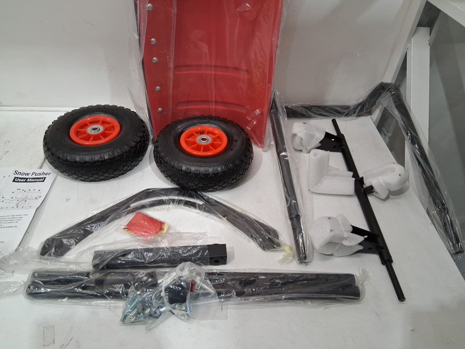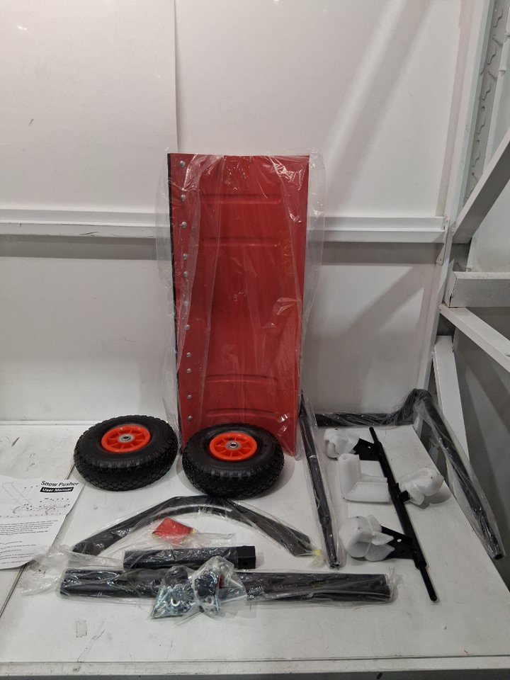 Snow Shovel with Wheels Snow Removal Tool with Metal Blade,Snow plow with Adjustable Handle and Angled Blade - 29" - black / red - (model: 7830n )