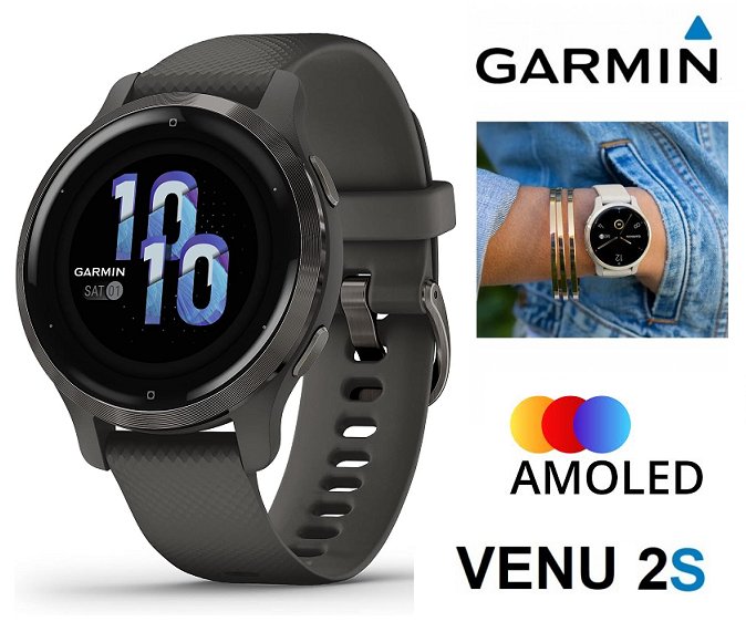 Garmin Venu 2S Smaller-Sized GPS Smartwatch with Advanced Health Monitoring, Fitness Features, and Silicone SPORT Band - GRAPHITE (Model: 010-02429-00)