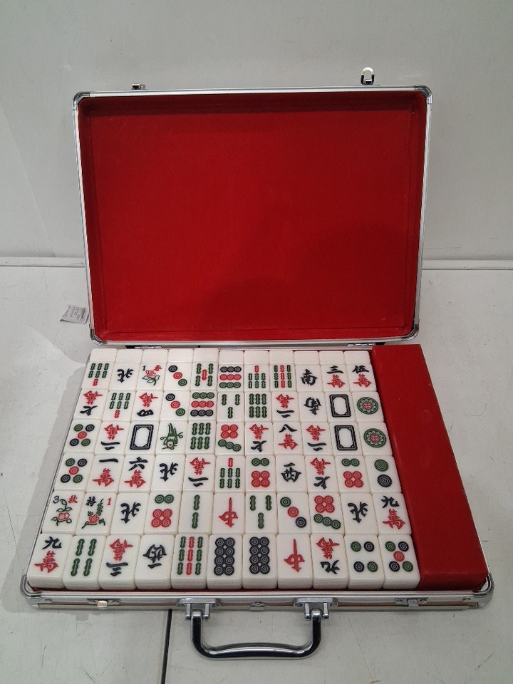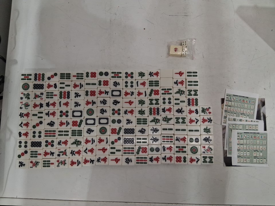 The tiles were hand counted and are complete. Please note that there is minor debris inside the case consistent with previous use. Multiple tiles have minor cracks similar the one photographed, but none are damaged/useless There is a crack on the case