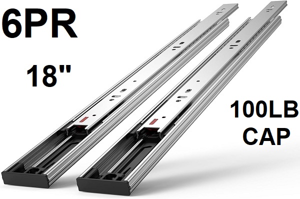 6pr drawer slide side mount rails - 18" - 100lb cap - silver (model: 4605s2.450-6)