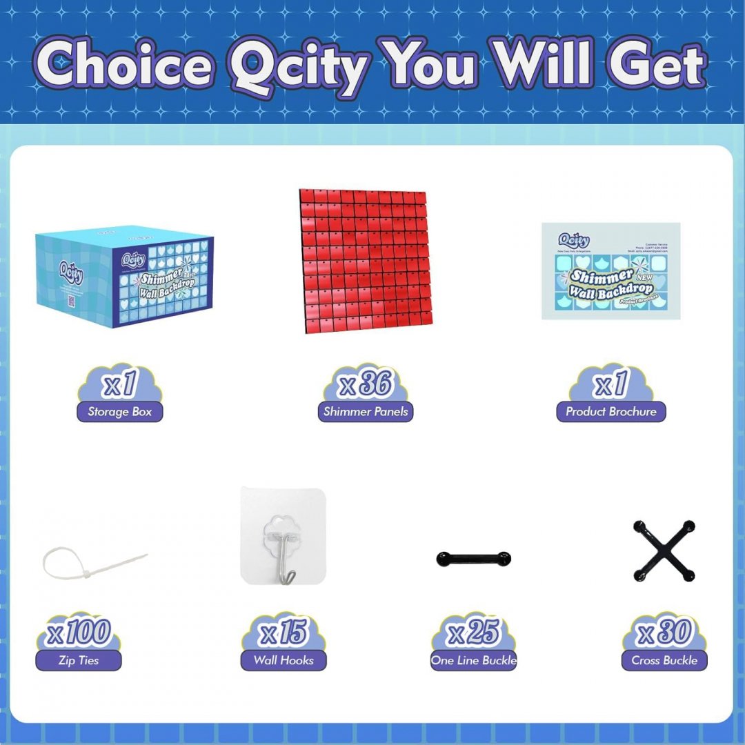 36PC Qcity Red Shimmer Wall Backdrop Square Sequin- RED