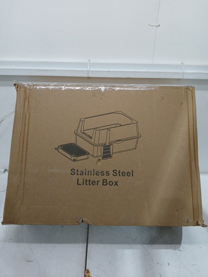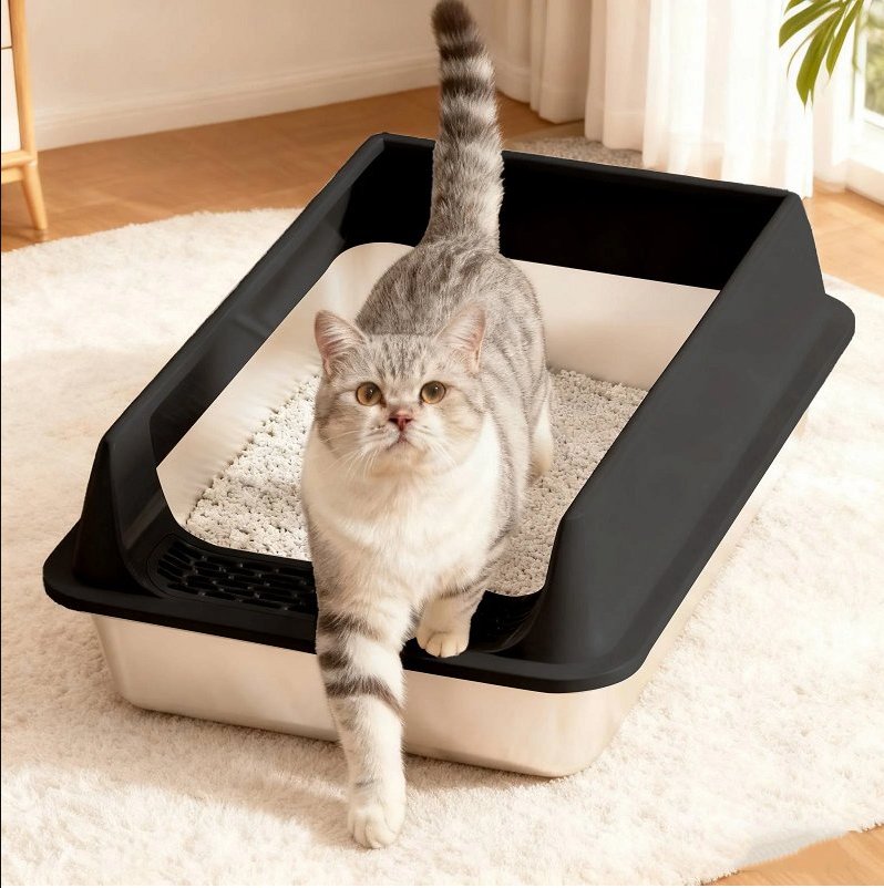 high-sides metal cat litter box with mat & scoop - 11.8"x15.7"x5.9" - black/stainless steel