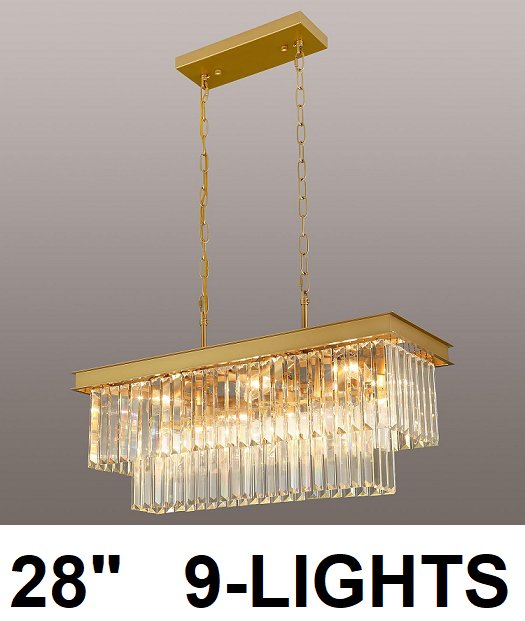 WEESALIFE MODERN RECTANGULAR Crystal Chandeliers FOR OVER KITCHEN ISLAND - 9-LIGHT - 28" - GOLD (MODEL: