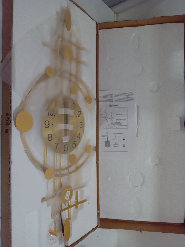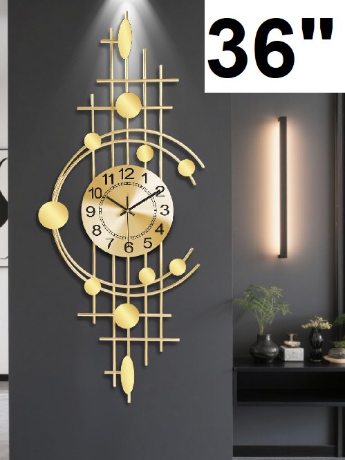 Silent Quality Quartz Battery Operated Metal Decorative Large Wall Clock - 14.5"x 36" - gold