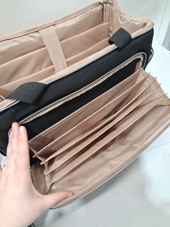 item bag has light marks on it, and the wheels on the base have light signs of wear (see photos)