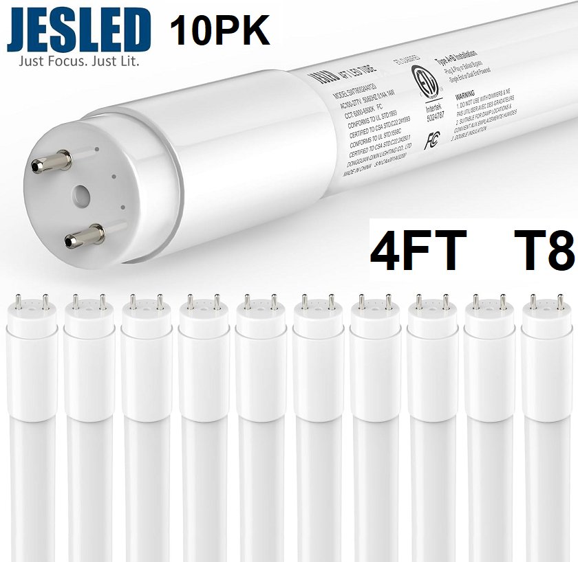 10PK JESLED T8 LED TUBE LIGHTS - (14W 2450LM 6500K) Type A+B T10 T12 Fluorescent Bulbs Replacement Plug & Play + Ballast Bypass - Frosted