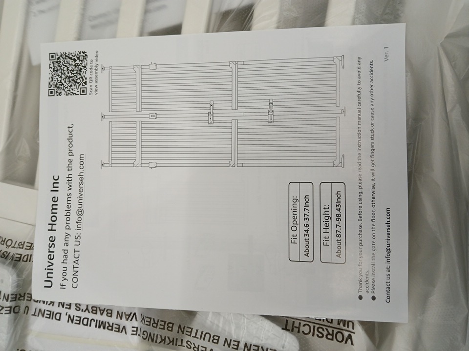 Unipaws No Drilling Extra Tall Safety pet gate - 86"-98" x 34"-37" - White - (Model-UH5257)