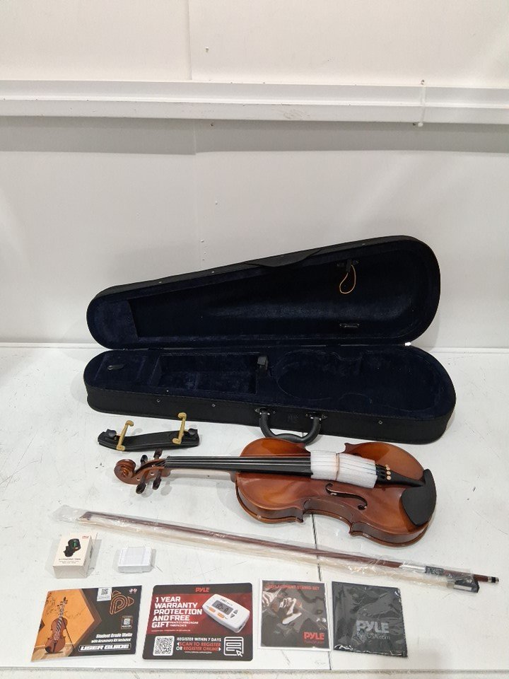 Pyle Plywood Violin Stringed Instrument with accessories- 3/4 size - maple Wood (Model: pgviln16)