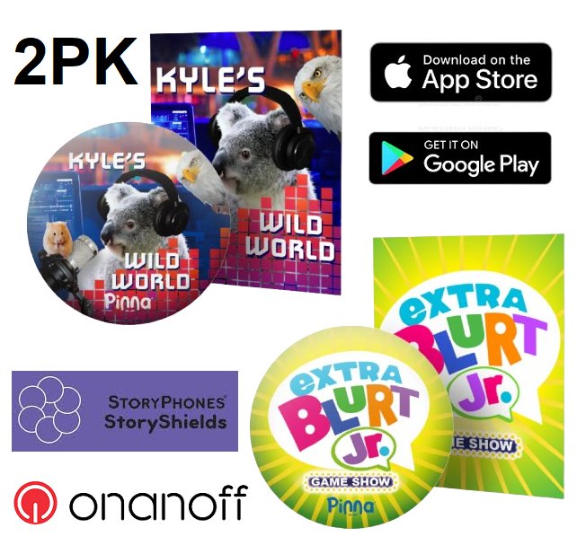 2PK storyshield DISCS for ONANOFF storyphones - KYLE'S WILD WORLD & EXTRA BLURT JR. GAME SHOW - WORKS WITH IOS AND GOOGLE PLAY