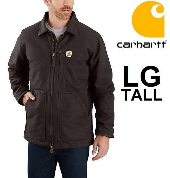 mens carhartt loose FIT, SHERPA LINED, WASHED DUCK FIELD JACKET - 2 WARMEST RATING - large tall- dark brown (style: 0c4293-m)