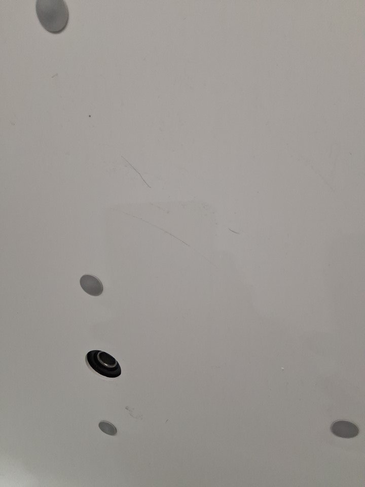 There are scratch marks on the puzzle board and there is minor hair residue on the cover due to previous use. (Please see photos)