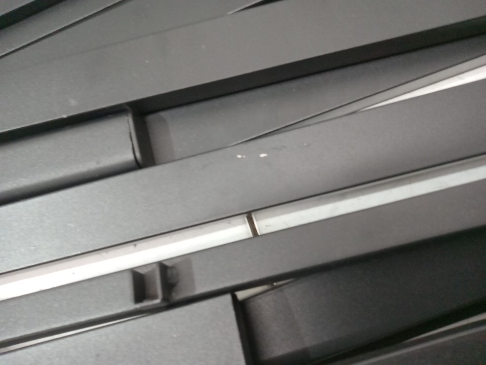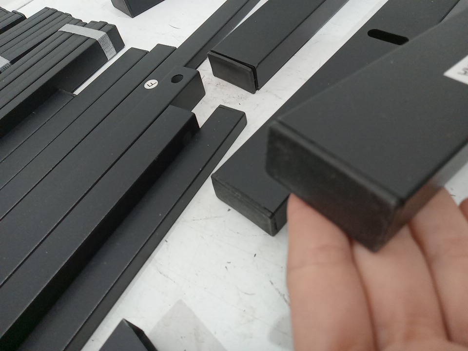 Has some dust on the bottom of the legs and minor scuffs. Might be missing some hardware