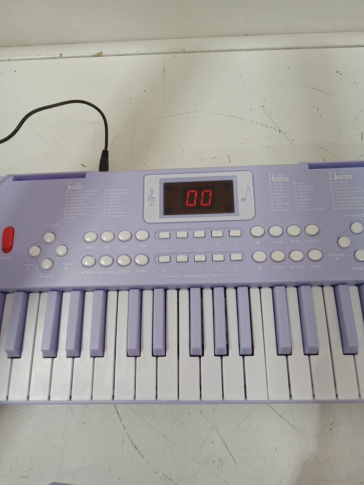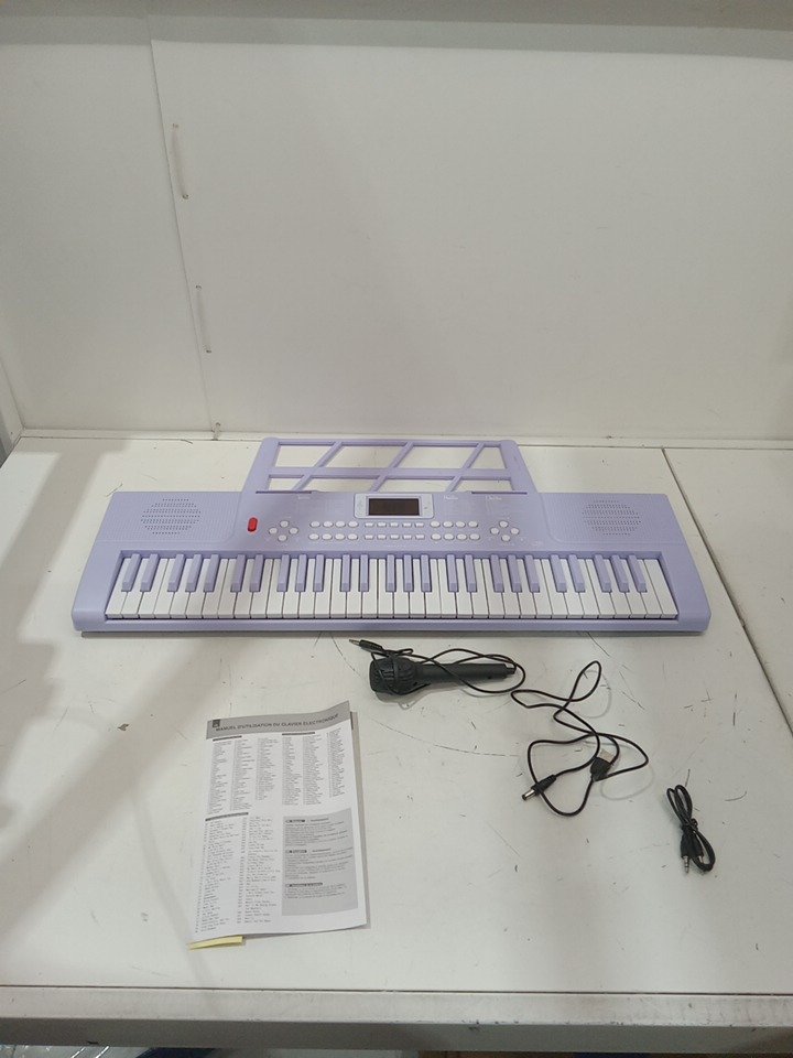 shayson 61-Key Electric Keyboard with Microphone - 100-Tones - 70 demo songs - led display - 100 tones - purple