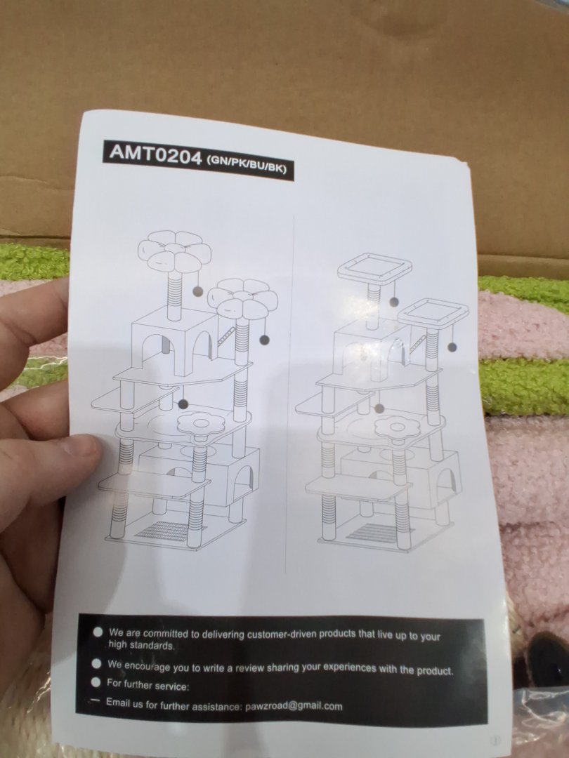 PAWZ Road Flower Cat Tree with Steel Frame Hammock and 7 Scratching Posts - 72" - pink\green - (model: amt0204pk)