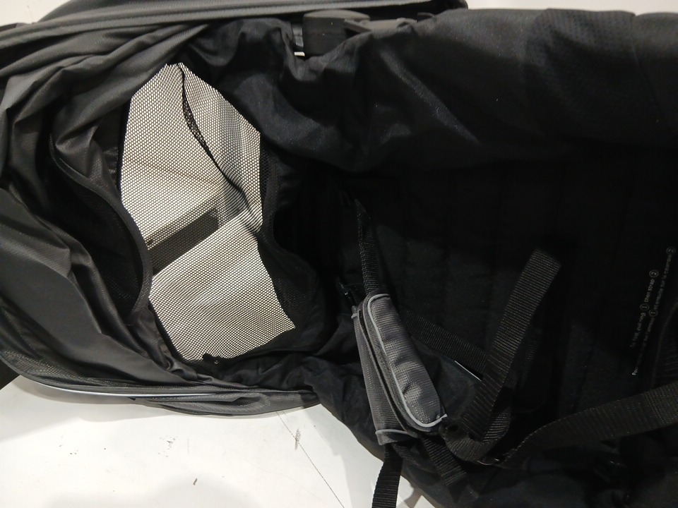appears lightly used due to some very minor dirt on outer plastic and on wheels.