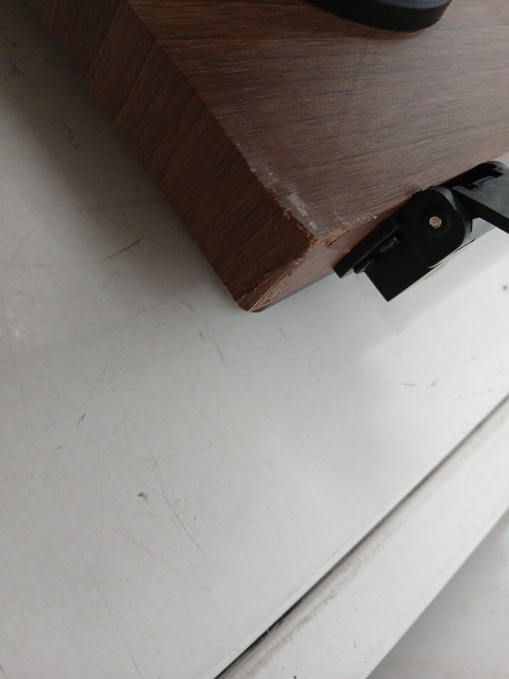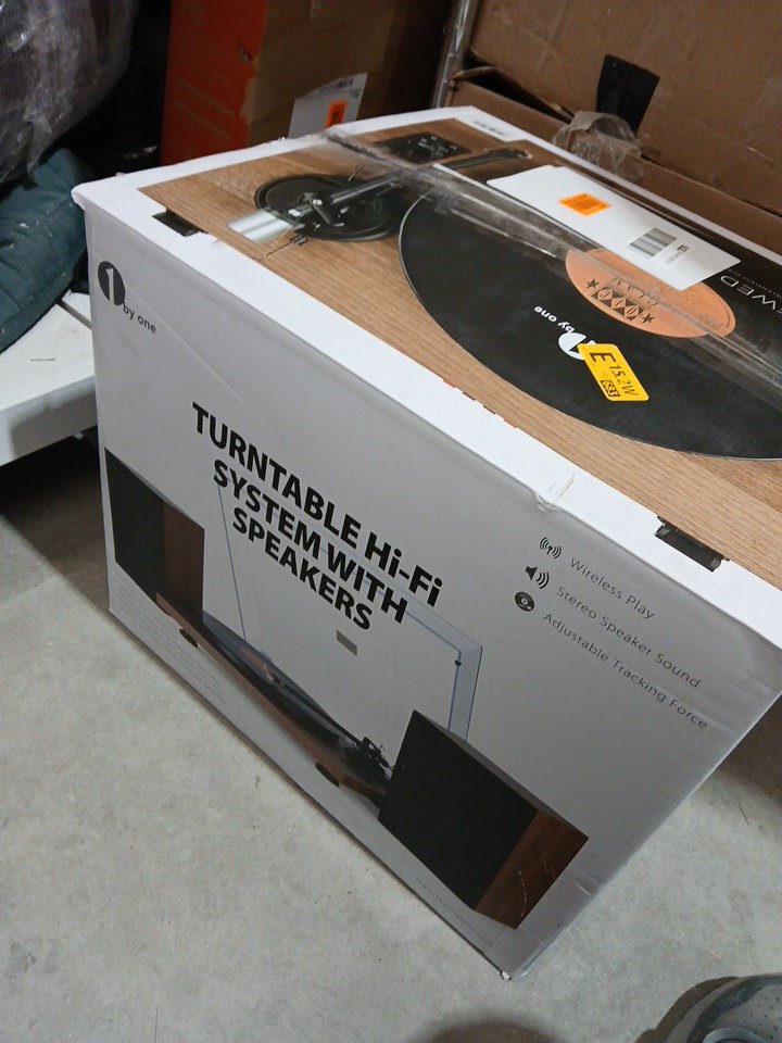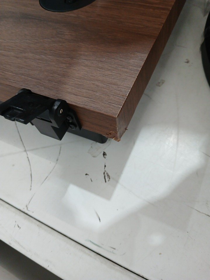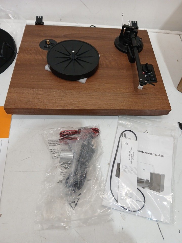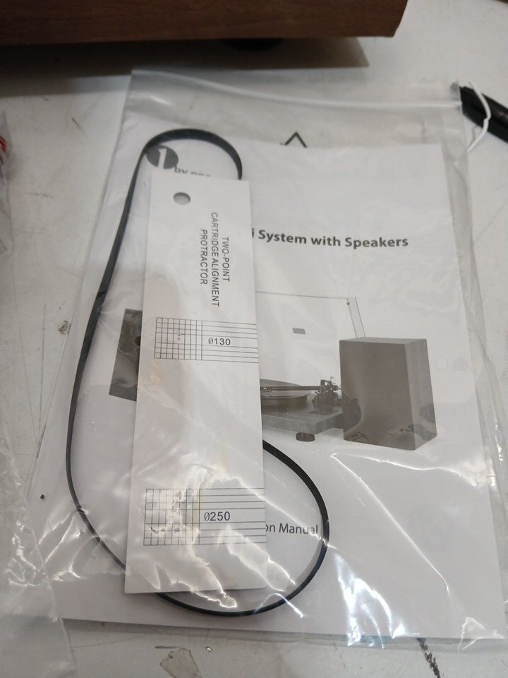 Please note the turntable has a presence of dents/dings on the wooden portion, and the plastic dust cover has some cracks, dings, dents, and is also missing one of its rubber feet. See photos. The bookshelf speakers box was still sealed. Turntable has been tested for power and function.