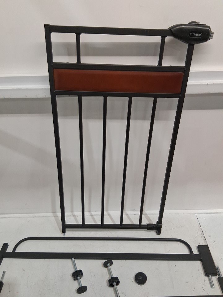 Regalo Home Accents Extra Wide Walk Thru Baby Gate - 30" to 42" - Black Cherry Wood (model: ‎0310DS)