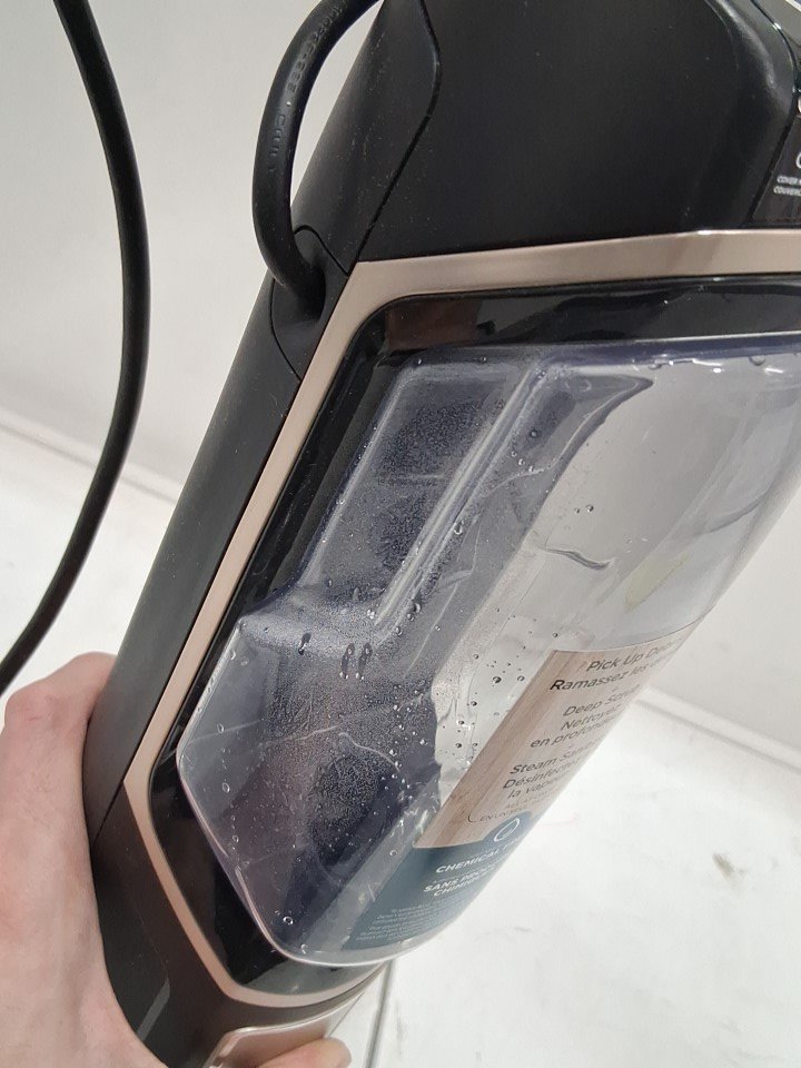**Tested for power.** Item has light wear on the roller brush, residual water droplets in the reservoir, minor markings on the exterior from previous gentle use, see photos.