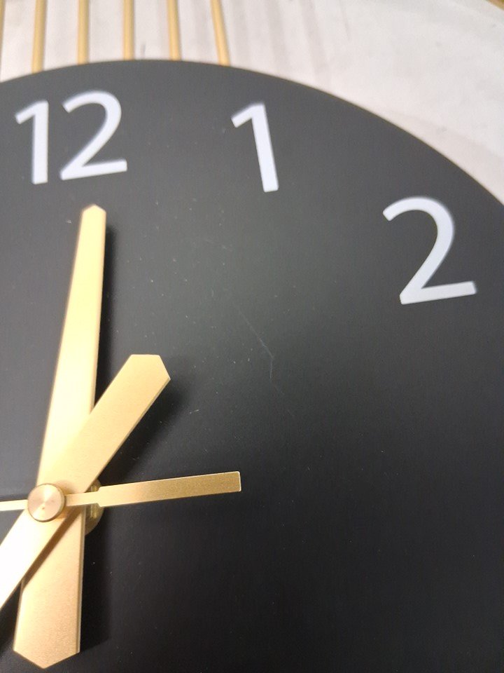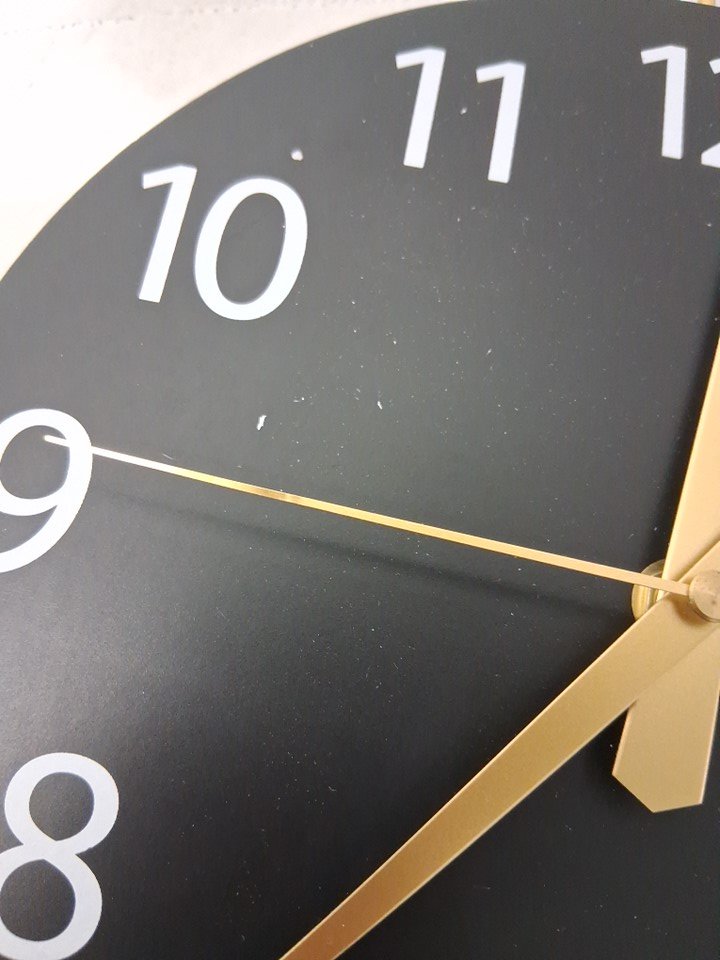 "Seconds" hand has a small bend. Clock face has a small scratch. Tested for power.