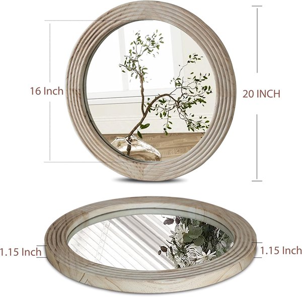 LOSOUR ROUNDED FARMHOUSE BATHROOM MIRROR - 20'' - BROWN